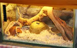 – Un bac à eau : ce dit bac doit être de bonne taille afin que le reptile s’y immerge sans aucun souci. Même si on a à faire à un reptile qui n’apprécie pas se baigner, l’eau contenue dans le bac servira à apporter une bonne quantité d’humidité au dit abri et servira tout aussi à aider les serpents à mieux respirer et surtout à avantager la métamorphose : cette phase importante chez les serpents. De nos jours, on compte sur les commerces, des matériaux électroniques donnant ainsi le taux exact de fraîcheur. Et si le détenteur du vivarium opte pour de l’eau thermale, celle-ci devra être renouvelée périodiquement afin qu’elle soit toujours impeccable.